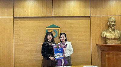Đồng chí Lê Thị Bích Thanh - Chủ tịch Công ty kiêm Tổng giám đốc trao quyết định, tặng hoa chúc mừng cho đồng chí Nghiêm Quỳnh Phương