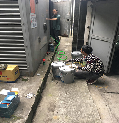 Kỹ thuật viên bảo dưỡng máy phát điện số 2 của Tòa nhà Kinh Đô