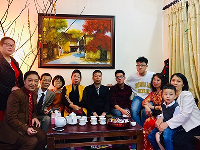 Anh tâm sự:” Để xây dựng được một gia đình ấm no, hạnh phúc như ngày hôm nay ngoài sự cố gắng của bản thân thì không thể không nói đến sự chia sẻ, động viên của vợ” chị hiện đang làm việc tại Nhà máy bánh kẹo Hải Hà, công việc tuy bận rộn nhưng chị vẫn sắp xếp thời gian để hoàn thành tốt công việc ở cơ quan cũng như chăm sóc cho gia đình.