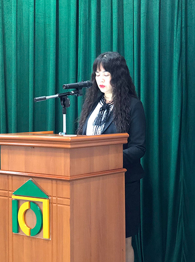 Đồng chí Bí thư chi bộ Lê Thị Bích Thanh trình bày báo cáo tại Hội nghị