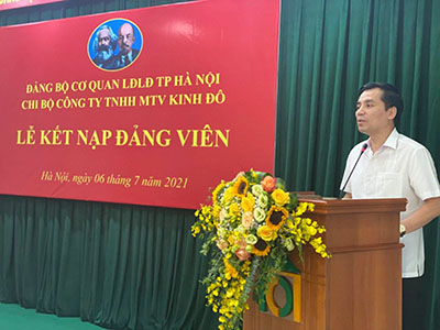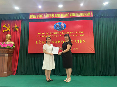 Sáng ngày 06/07/2021, được sự đồng ý của Đảng bộ Cơ quan Liên đoàn Lao Động Thành phố Hà Nội, Chi bộ Công ty TNHH MTV Kinh Đô đã tổ chức Lễ kết nạp đảng viên cho quần chúng ưu tú Đào Thị Hồng Nhung, chuyên viên Phòng Kinh Doanh - Công ty TNHH MTV Kinh Đô (Công ty Kinh Đô)