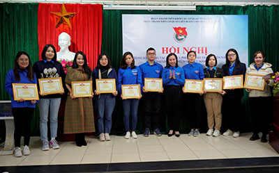 Đồng chí Trần Thị Tuyết Lý , Bí thư Đoàn Thanh niên cơ quan LĐLĐ Thành phố trao Giấy khen cho các cá nhân đạt thành tích xuất sắc