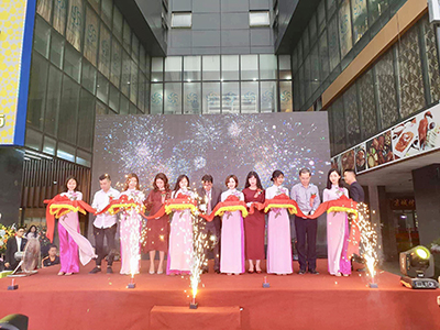 Bà Giám đốc Công ty Phúc Lộc, Bà Chủ tịch Công ty kiêm Tổng giám đốc Công ty Kinh Đô và khách mời tham gia cắt băng khai trương Tràng An Palce – cơ sở 2