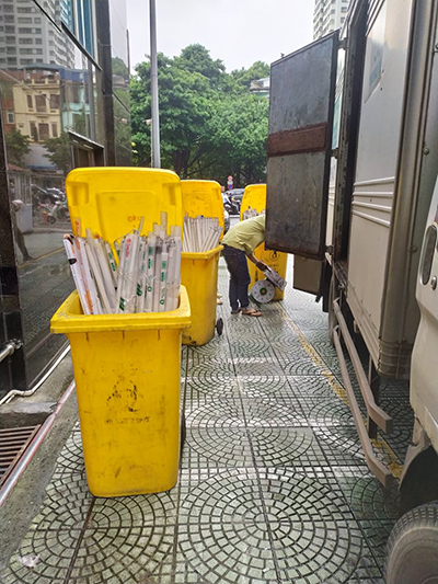 Một số hình ảnh vận chuyển rác thải nguy hại tại Tòa nhà Kinh Đô trong tháng 8/2020