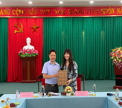 Đại diện lãnh đạo hai đơn vị tặng quà lưu niệm