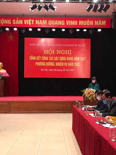Sáng 30/12/2021, Đảng bộ cơ quan Liên đoàn Lao động (LĐLĐ) thành phố Hà Nội đã tổ chức Hội nghị tổng kết công tác xây dựng Đảng năm 2021, phương hướng, nhiệm vụ năm 2022.