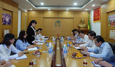 Bà Lê Thị Bích Thanh báo cáo tại cuộc họp