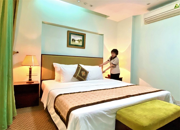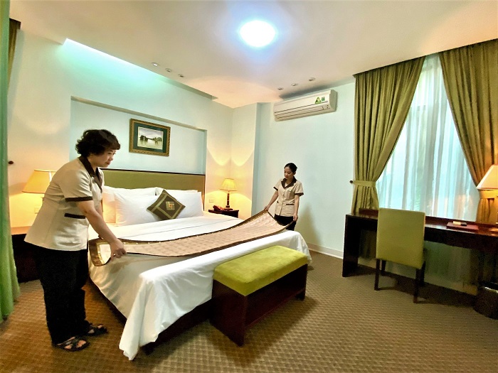 - Khách sạn có 4 tầng gồm 49 phòng nghỉ với đầy đủ tiện nghi như thang máy, truyền hình cáp, wifi, đồ uống miễn phí … đạt tiêu chuẩn 3 sao, đặc biệt Khách sạn có bãi đỗ xe rộng rãi và an toàn phục vụ khách.