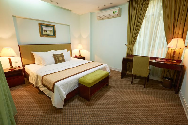 - Khách sạn toạ lạc trên khuôn viên rộng lớn, rợp bóng những cây cổ thụ, nằm ngay ngã năm, giáp với các tuyến phố lớn như Tăng Bạt Hổ - Trần Thánh Tông - Lê Thánh Tông - Trần Hưng Đạo và Hàn Thuyên, cách Hồ Hoàn Kiếm khoảng 1km, thuận tiện cho việc đi lại, giao dịch, làm việc hay tham quan của Quý khách.