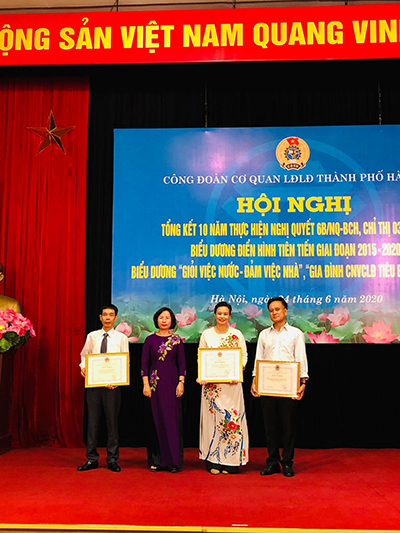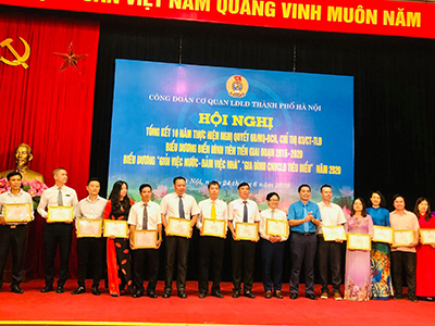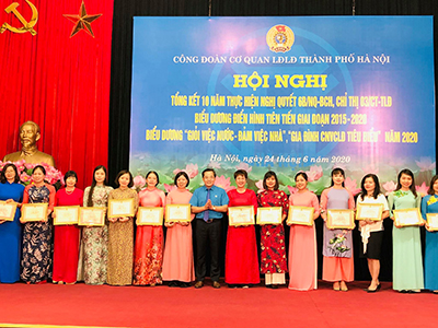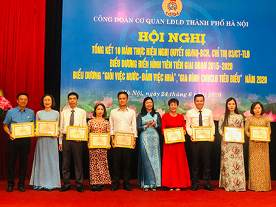 Chiều 24/6, tại Cung Văn hóa Lao động hữu nghị Việt Xô đã diễn ra Hội nghị tổng kết 10 năm thực hiện nghị quyết 6B/NQ-BCH, chỉ thị 03/CT-TLĐ; biểu dương “Điển hình tiên tiến” giai đoạn 2015-2020, biểu dương cá nhân “Giỏi việc nước – Đảm việc nhà”, “Gia đình CNVCLĐ tiêu biểu” năm 2020 của Công đoàn Cơ quan LĐLĐ thành phố Hà Nội.
