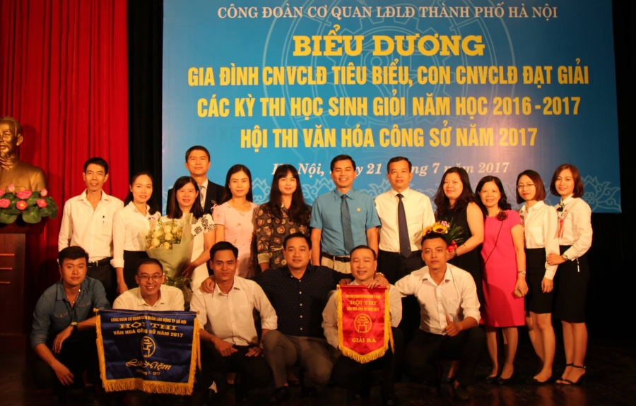Thực hiện theo kế hoạch số 33/KH-CĐCQ ngày 12/6/2017 của Công đoàn Cơ quan LĐLĐ TP Hà Nội, vào sáng thứ 6 ngày 21/7/2017, tại Hội trường Cung văn hóa lao động hữu nghị Việt Xô đã diễn ra Hội nghị biểu dương Gia đình tiêu biểu năm 2017 và con CNVCLĐ đạt giải các kỳ thi học sinh giỏi năm 2016-2017 đồng thời tổ chức Hội thi Văn hóa công sở năm 2017 trong hệ thống Cơ quan LĐLĐ TP HN