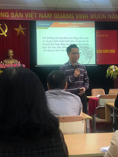 Cũng tại Hội nghị các đồng chí đoàn viên được thầy Nguyễn Huy Khoa – Tiến sĩ – Giảng viên chính khoa Luật trường Đại học Công đoàn cập nhật về công tác chính sách, pháp luật (Bộ luật lao động năm 2019, tiền lương, bảo hiểm), nắm bắt dư luận xã hội, Công tác dân chủ cơ sở, đối thoại nơi làm việc....