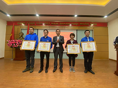 Đại diện Chi Đoàn thanh niên Công ty nhận Giấy khen từ Đoàn khối các CQTP và Đoàn CQ LĐLĐ TP