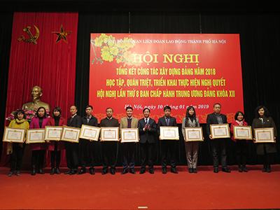 Sáng ngày 10/01/2019, tại Cung văn hóa hữu nghị Việt Xô, Đảng bộ cơ quan LĐLĐ Thành phố Hà nội tổ chức Hội nghị Tổng kết công tác xây dựng Đảng năm 2018 và Học tập, Quán triệt, triển khai thực hiện nghị quyết Hội nghị lần thứ 8 của Ban chấp hành Trung ương Đảng khóa XII.