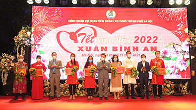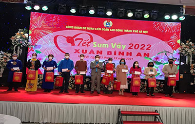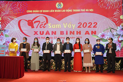 Đặc biệt, tại Chương trình Tết Sum vầy, Công đoàn Cơ quan LĐLĐ Hà Nội đã trao tặng trợ cấp khó khăn cho các đồng chí đoàn viên Công đoàn gặp nhiều khó khăn vì nghỉ việc dài ngày do ảnh hưởng Covid 19 và gia đình gặp nhiều khó khăn.