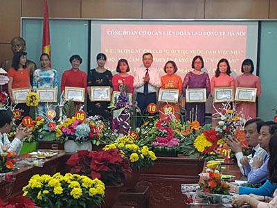 Nhân kỷ niệm 108 năm Ngày Quốc tế Phụ nữ 8/3 và 1978 năm khởi nghĩa Hai Bà Trưng, BCH Công đoàn cơ quan Liên đoàn lao động Thành phố Hà Nội đã tổ chức tổng kết phong trào thi đua :Giỏi việc nước – Đảm việc nhà” năm 2017 gắn với tổ chức gặp mặt, biểu dương khen thưởng các tập thể và cá nhân tiêu biểu trong phong trào thi đua “Giỏi việc nước – Đảm việc nhà” năm 2017.
