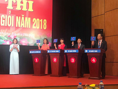 Các thí sinh đang tham gia phần thi kiến thức chung