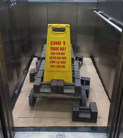 Kiểm tra tải trọng khi kiểm định thang máy tại Tòa nhà Kinh Đô