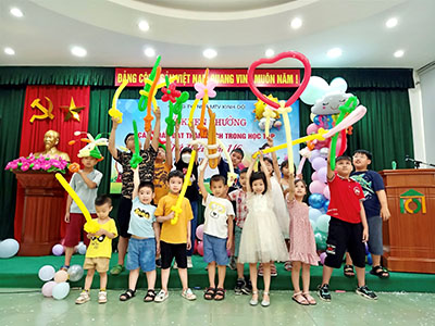Cùng với buổi lễ khen thưởng là chương trình biểu diễn, vui chơi, liên hoan vô cùng sôi nổi và hào hứng. Các cháu đã có một khoảng thời gian vô cùng vui vẻ, được giao lưu cùng các bạn, các anh chị, được chiêm ngưỡng và tham gia các màn biểu diễn của các cô chú đến từ Trung tâm Nghệ thuật Bóng bay. Các cháu đã có một ngày Tết thiếu nhi thật vui và đáng nhớ.