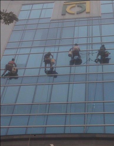 Vào thời gian này trong năm, thời tiết Hà Nội hài hòa, rất thuận lợi cho việc làm vệ sinh mặt ngoài Tòa nhà. Công việc vệ sinh Tòa nhà tưởng chừng như chỉ là công việc giản đơn, thô sơ nhưng thực tế không phải như vậy. Để Tòa nhà luôn được sạch sẽ sáng sủa đảm bảo chất lượng dịch vụ nói chung thì ngoài việc hàng ngày vệ sinh kỹ càng, cẩn thận tại toàn bộ phía bên trong Tòa nhà, sảnh, hành lang, sân,… thì việc tổng vệ sinh, lau toàn bộ mặt kính, đá bên ngoài tòa nhà từ trên xuống là không thể thiếu. Và những người có thể thực hiện được việc này không ai khác là những spidermen – người nhện từ các Công ty Vệ sinh công nghiệp, và ở Tòa nhà Kinh Đô là những người nhện đến từ Công ty TNHH DV Vệ sinh Thành Mỹ.