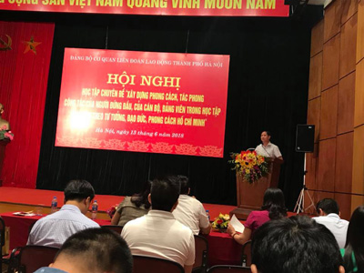 Sáng ngày 13/6/2018, Đảng bộ cơ quan LĐLĐ Thành phố Hà nội tổ chức Hội nghị Học tập chuyên đề xây dựng phong cách tác phong công tác của người đứng đầu, của cán bộ, đảng viên trong học tập và làm theo tư tưởng, đạo đức, phong cách Hồ Chí Minh.