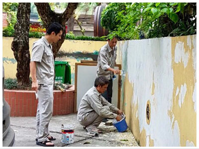 Ngoài các công tác sửa chữa, sơn sửa tại các phòng , hành lang trên các tầng, năm nay bộ phận bảo trì khách sạn còn chủ động nhận công việc quét sơn lại bờ tường bao quanh sân khách sạn. Sau một thời gian vận hành, bị ảnh hưởng trực tiếp bởi thời tiết và những tác động vật lý khác, nên tường rào bao quanh sân khách sạn đã có dấu hiệu xuống cấp, bong tróc nhiều chỗ, một số nơi do độ ẩm cao bị rêu bao phủ, gây mất mỹ quan cho khách sạn. Sau khi họp, Ban giám đốc điều hành khách sạn đã cân nhắc việc thuê đội ngũ sơn sửa lại cảnh quan. Nhưng nhận thấy đây là việc nằm trong khả năng của bộ phận, nên tổ Bảo trì đã chủ động nhận nhiệm vụ để tiết kiệm chi phí sửa chữa cho khách sạn. Đây không phải là lần đầu tiên bộ phận Bảo trì có những ý tưởng làm việc như thế này, mà đã rất nhiều lần các anh có những sáng kiến hoặc việc làm giúp tiết kiệm chi phí, tăng hiệu quả phục vụ của khách sạn.