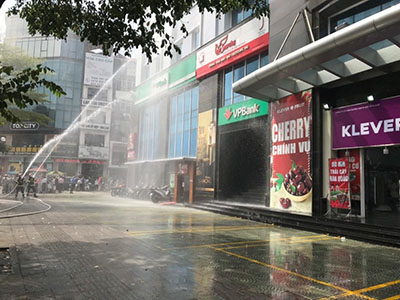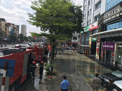 Cảnh diễn tập chữa cháy tại Tòa nhà Kinh Đô