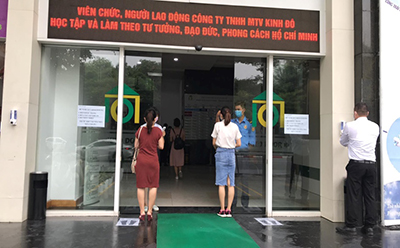 đo thân nhiệt trước khi vào làm việc tại Tòa nhà Kinh Đô